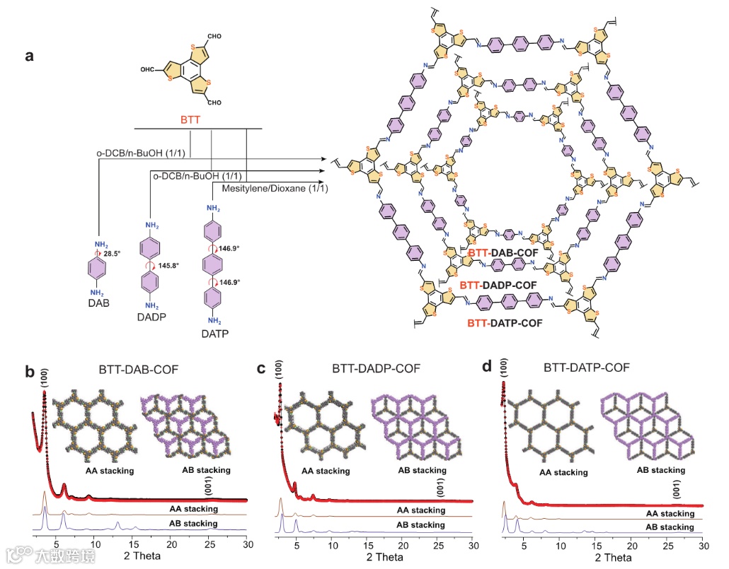 图1. 基于功能基元的具有不同扭转角和堆积模式的COFs合成方法
