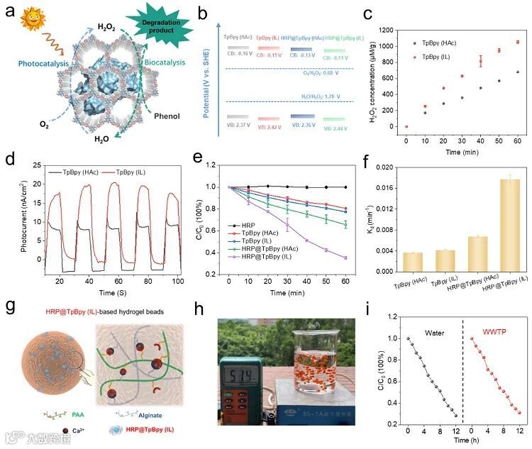 图3. 酶@COF自级联光-酶反应器用于降解污染物
