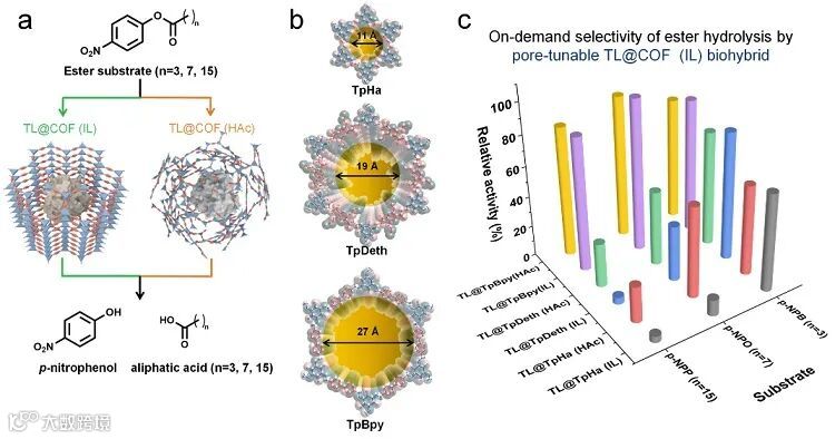 高结晶度的COF孔道具有筛分作用,可赋予部分酶分子非天然的生物催化选择性