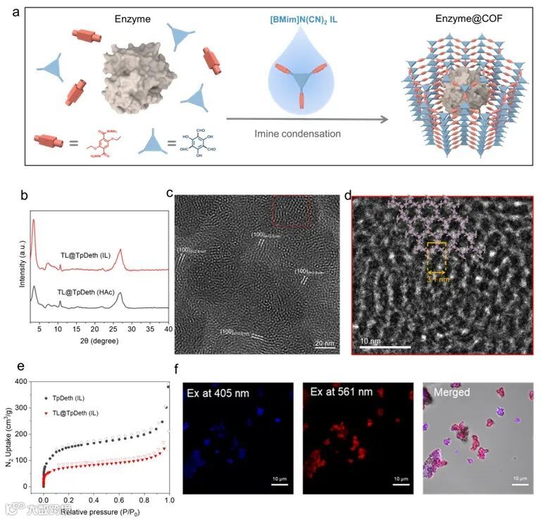 利用绿色、微量的离子液体作为催化剂和调节剂用于制备高结晶酶@COF生物催化剂