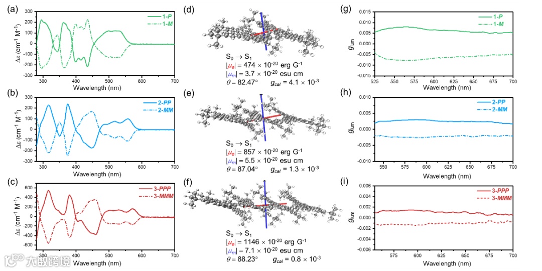 跃迁下的跃迁偶极矩;(g-i)CPL光谱。图片来源: