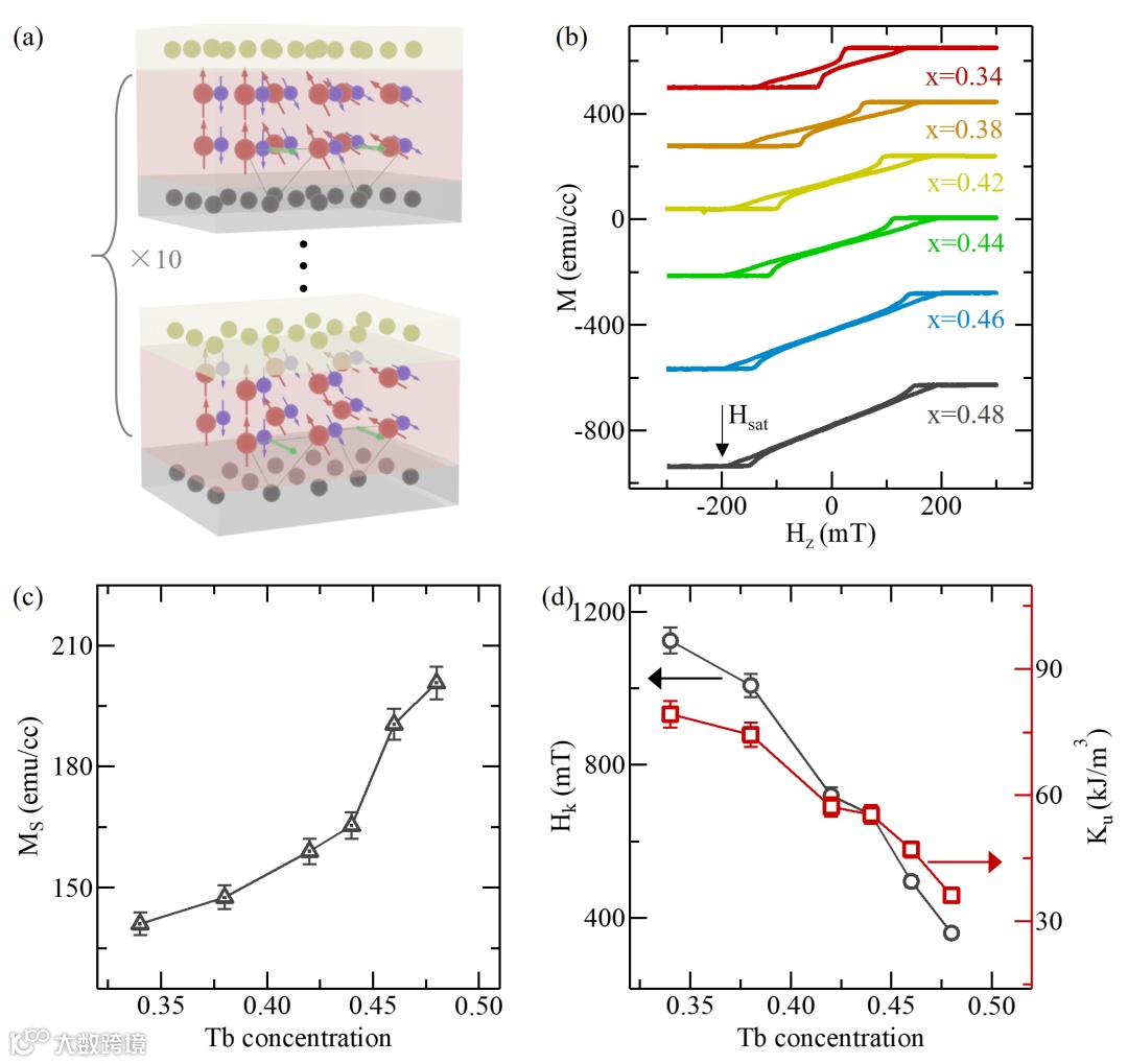图二. 组分调制磁性多层膜材料的磁性参数。