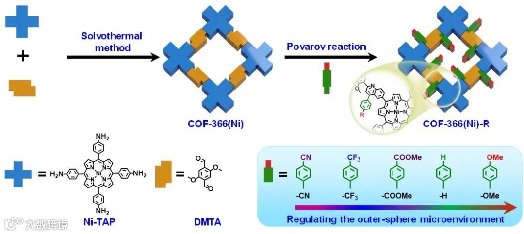 导读:中国科学技术大学江海龙教授和孟征特任教授团队基于一系列含有吸电子和给电子基团的COF,阐明了催化Ni位点周围不同官能团对氧分子活化的影响。他们发现调控催化反应性能的手段除了常见的直接改变催化金属位点之
