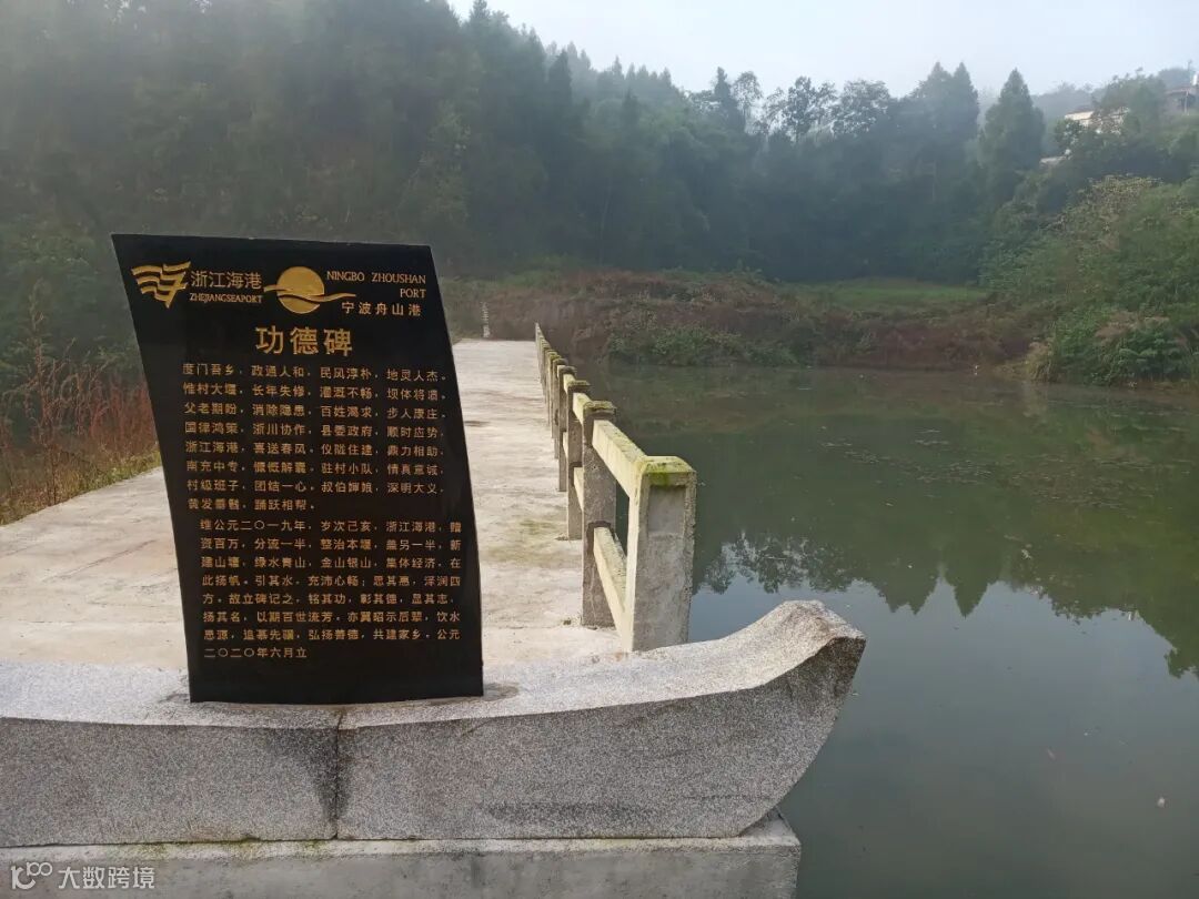 ▲王家店村专门在新建的水塘坝头立起功德碑,感谢集团出资修缮波家湾大堰。