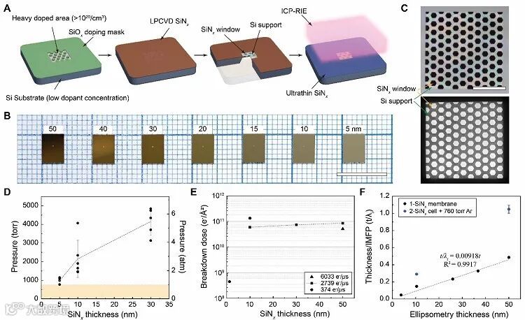 导读:美国西北大学的Xiaobing Hu和Vinayak Dravid教授研究团队巧妙利用掺杂浓度对Si的刻蚀速率影响,在观察窗口区域引入了额外的微米尺度Si支撑图案,成功的将SiNx膜的厚度从50 nm