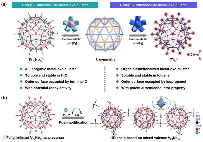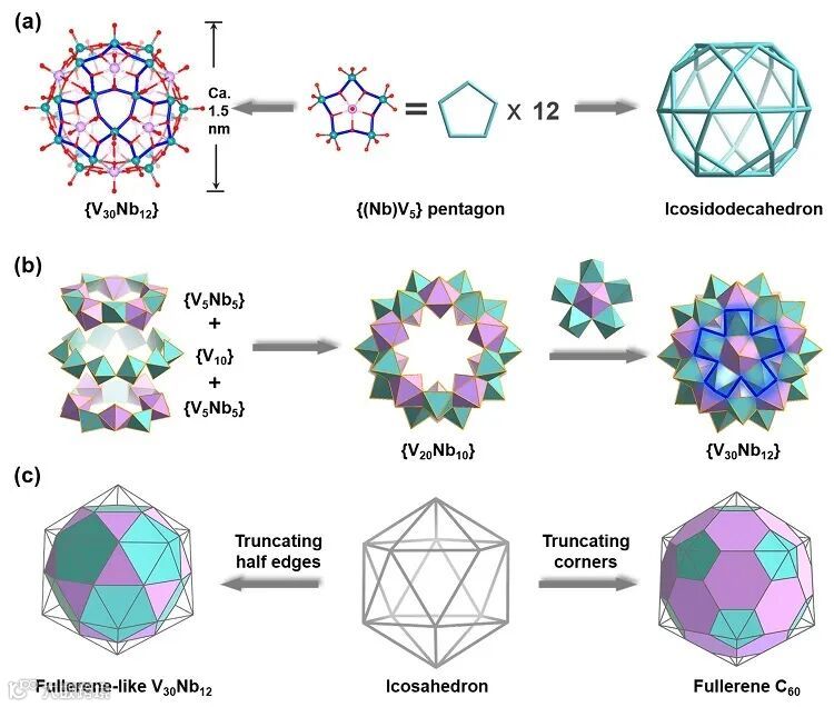 【无机】基于{Nb(V₅)}五角星的类富勒烯铌钒笼簇构筑