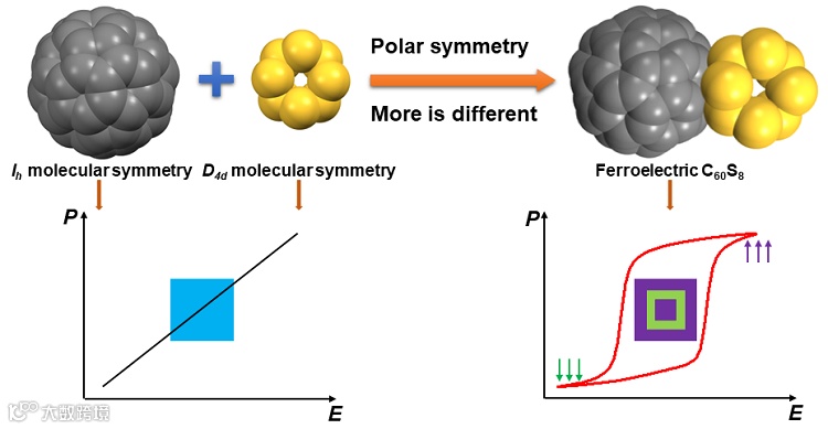 导读:南昌大学研究团队在“铁电化学”学术思想的指导下,结合Philip Anderson提出的“多则异”理念,成功设计合成了首例富勒烯加合物分子铁电体:C60S8。