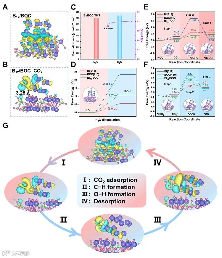 O解离之间达到平衡,所以Bi/BOC TNS催化剂表现出优异的甲酸生成速率。这项工作深入了解C