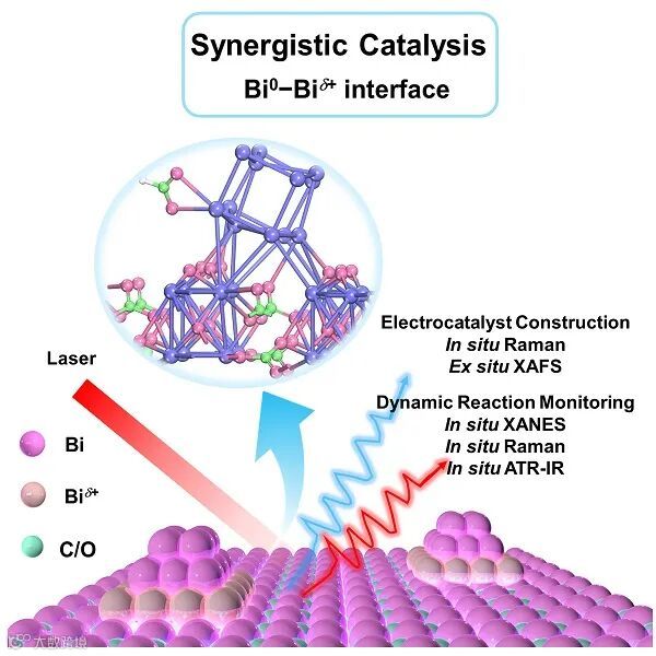 电还原制甲酸反应过程中活性中心的动态演化进行了研究。金属Bi颗粒和载体