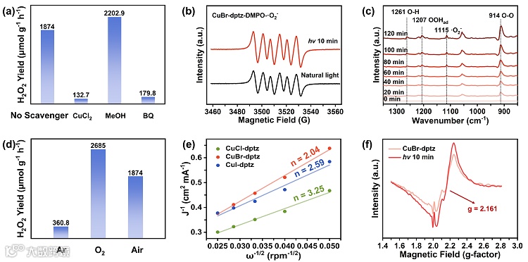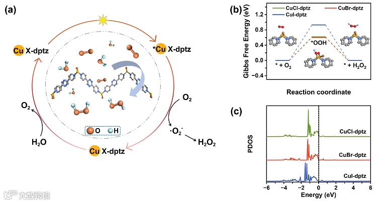 图4. (a) 以二维CuX-dptz为催化剂通过ORR途径光生成