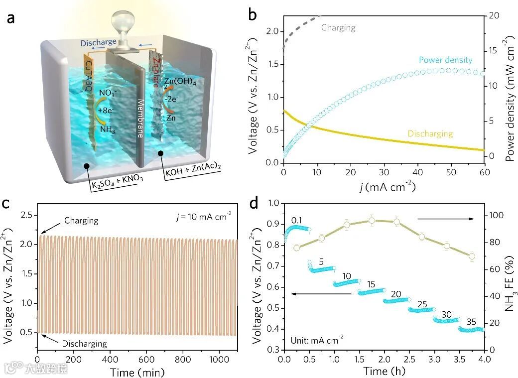最后,基于CuTABQ的优异性能,组装了可充电锌-硝酸根电池,表现出12.3 mW/c
