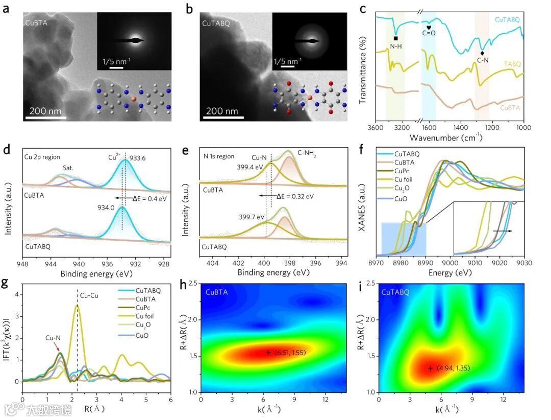实验表征证明了CuTABQ和CuBTA的合成,同时它们都具有片状结构。光谱证据表明羰基的引入使得Cu的结合能偏高,具有缺电子性质。