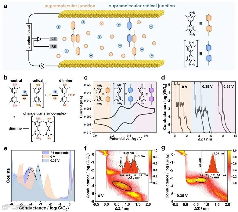 导读:厦门大学院洪文晶课题组与华威大学的Hatef Sadeghi课题组合作,采用自主搭建的电化学扫描隧道显微镜断裂结(EC-STM-BJ)技术原位制备了相同化学结构的超分子结和超分子自由基结,并研究了它们
