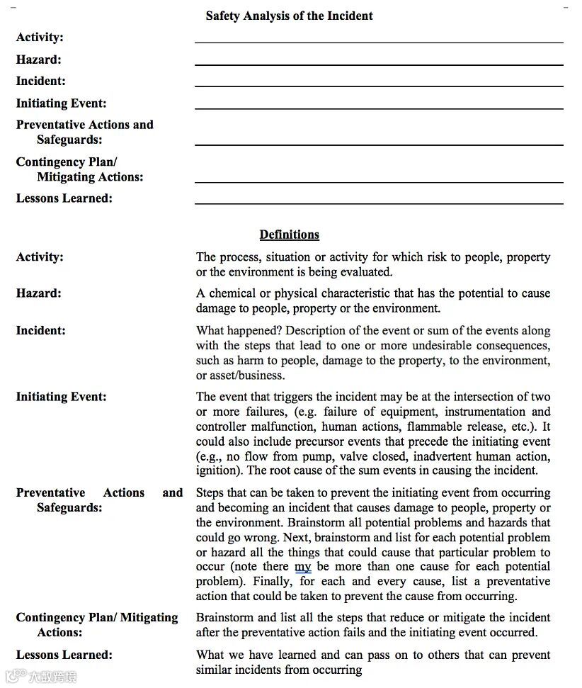 安全分析报告。图片来源:SafeChemE