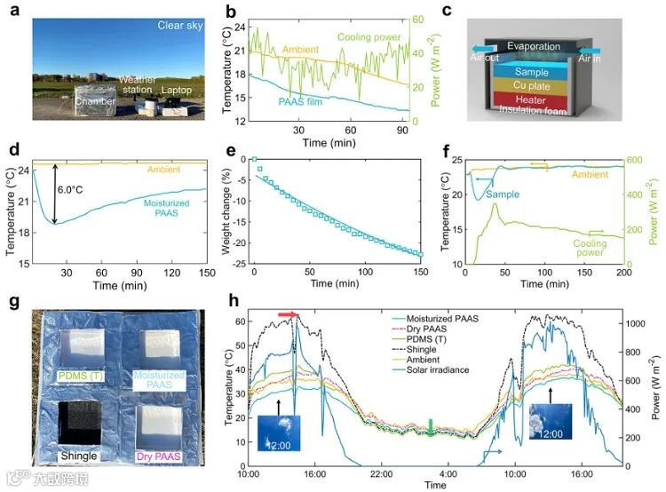 全球气温上升,极端高温事件对地球生态系统和人类的生存环境造成了严重威胁。高温天气下,人们对空调系统的需求迅速增加。然而,传统的电力依赖型冷却方法能耗巨大。因此,人们急需开发出高效的被动冷却技术。近年来,辐射制冷技术因其无需能源支持以及卓越的能源节省潜力备受瞩目。该技术的基本原理是通过利用物体表面吸收太阳短波辐射的能力,将长波红外辐射释放到极寒的外太空(仅3K),从而实现热量散失和降温效果。但是辐射制冷机制强烈依赖于环境条件。地面物体的热辐射通常只能通过清洁干燥的大气环境有效的辐射到外太空。因此,在多云、湿润、空气污染环境中,辐射制冷并不能稳定的发挥作用。因此我们还需要其他制冷技术协同工作来克服这一局限性。