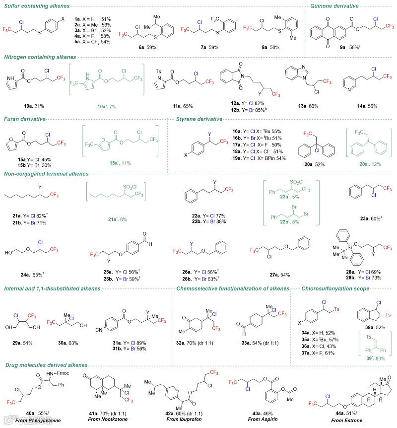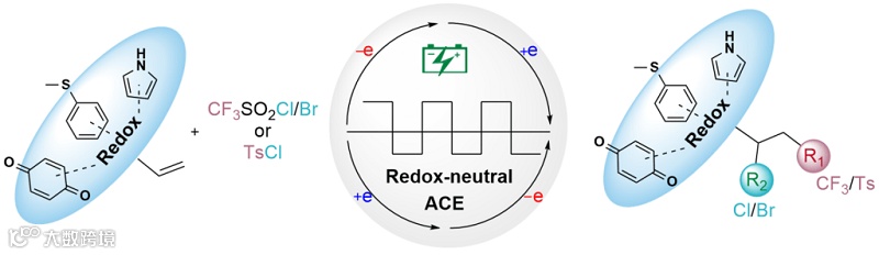 官能团的耐受性是评估有机合成方案可行性的重要因素。电化学有机合成的官能团兼容性通常容易受到其反应电位的限制。罗龙团队发现在交流电电解所营造的振荡氧化还原环境可以使反应过程中被氧化或还原的官能团得以再生。因此,即使是对于落在电位窗口内的不稳定的官能团(例如吡咯、醌和芳基硫醚),交流电可以提高官能团的耐受度并获得不错的产率。他们的研究结果为改善电合成中官能团兼容性开辟了一条新途径,并展示了根据伏安图特征预测交流电电解下产物产率的可能性。