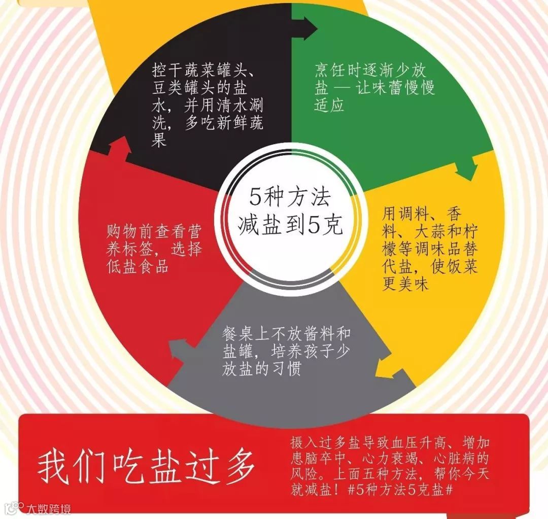 5.鼓励学校及工作场所食堂提供低盐食品。
