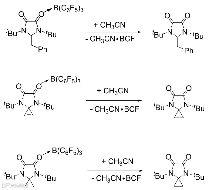 较小的路易斯酸可能会与DAC的卡宾碳发生一系列复杂反应。体积较大和商业化的BCF固体Lewis酸,是该策略中的首选。