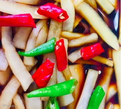 配料:米醋、白糖、酱油、盐 、红绿辣椒