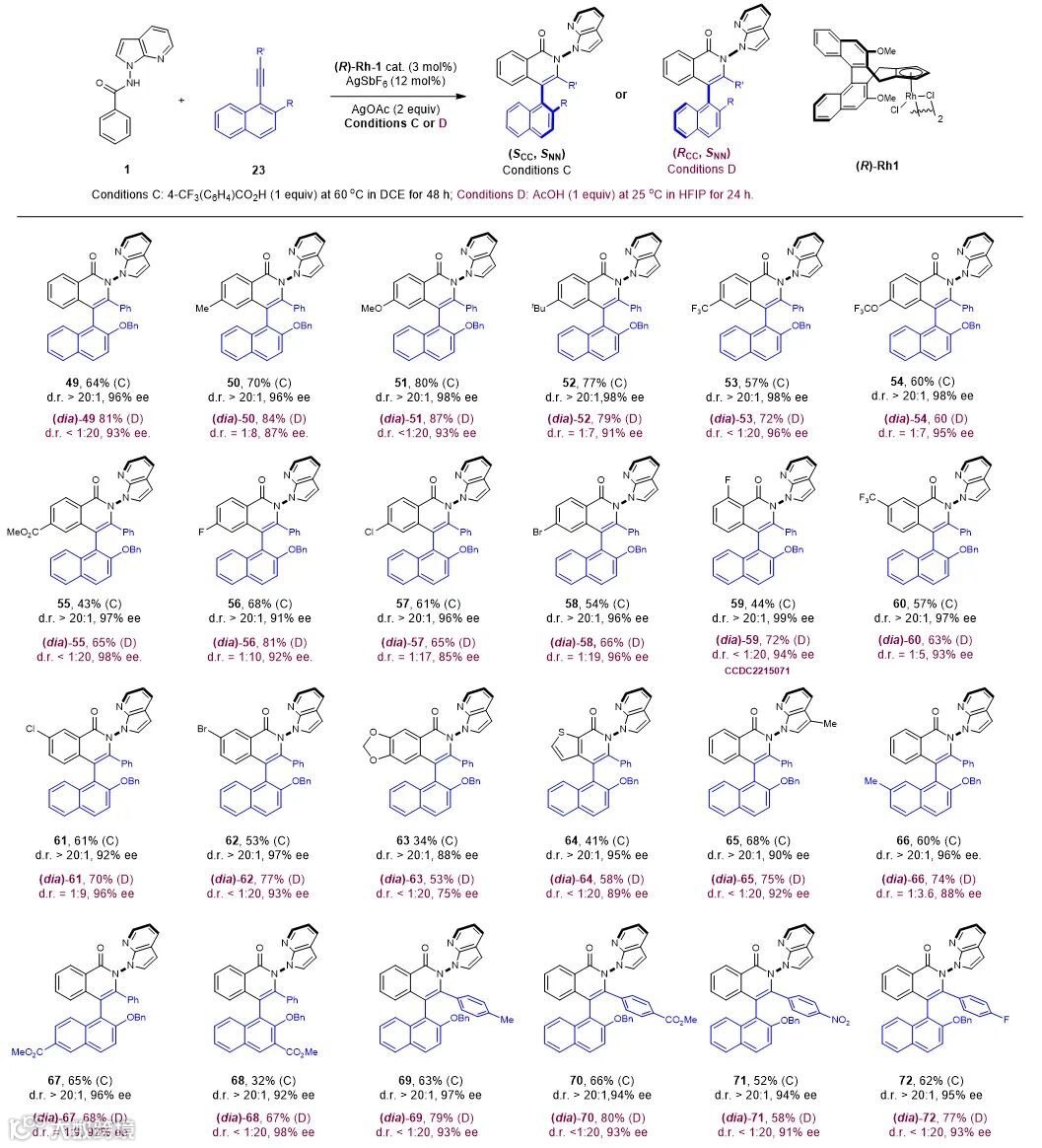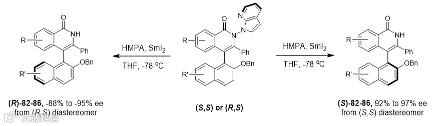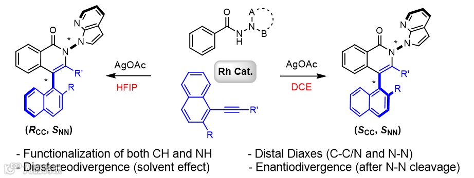 含有氮氮和碳氮/碳碳双轴手性联芳基化合物的构建,该反应具有优异的对映选择性和非对映选择性