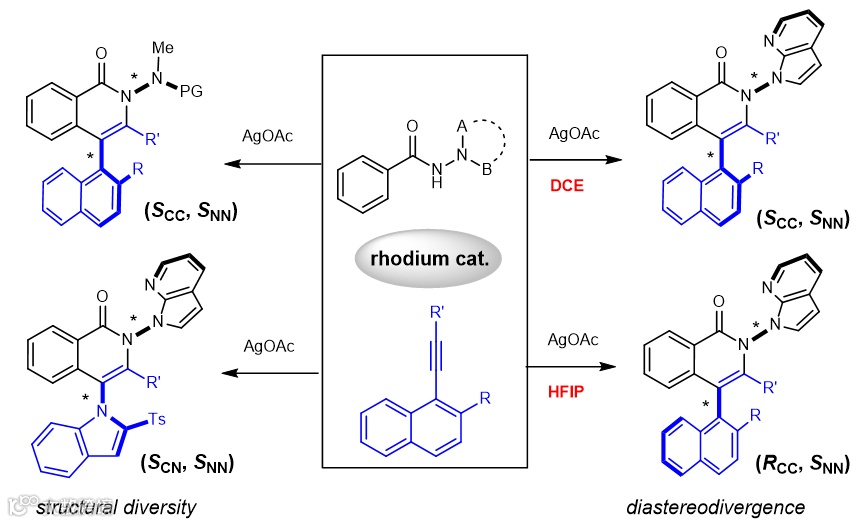 导读:山东大学李兴伟教授团队与合作者通过合理的底物设计,发展了含有氮氮和碳氮/碳碳双轴手性联芳基化合物的构建,该反应具有优异的对映选择性和非对映选择性