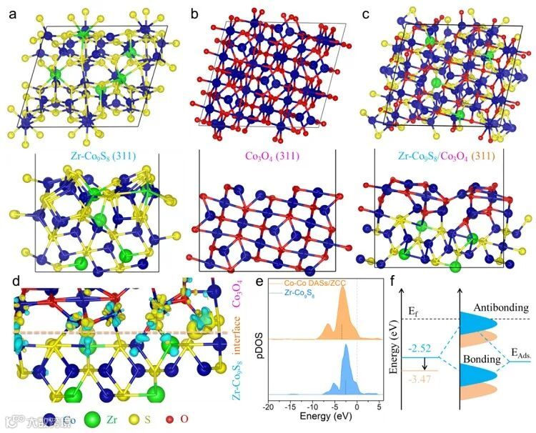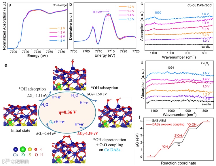开发成本效益高和可持续性的酸性水氧化催化剂对于提升质子交换膜电解水制氢尤为关键。近日,清华大学李亚栋院士团队利用理论模拟从材料设计调控和OER机理方面寻找突破口,运用单原子调控策略来构建原子分散锆掺杂的Co9S8/Co3O4异质结构的非贵金属Co-Co双核活性位点(dinuclear active sites, DASs)催化剂。