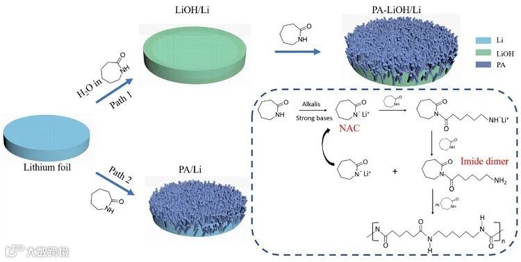 金属锂负极(LMA)因其高比容量和低电化学电位而被视为下一代高能量密度电池负极的首选。然而,其存在不稳定的锂电解质界面和不可控的枝晶生长,导致低库仑效率(CE)、短路和潜在的安全性问题。近日,广东工业大学施志聪教授联合阿德莱德大学郭再萍教授和南方科技大学谷猛教授设计了一种衍生自催化剂的人工SEI层,该层具有均匀有序的聚酰胺-氢氧化锂(PA-LiOH)无机-有机双层结构。