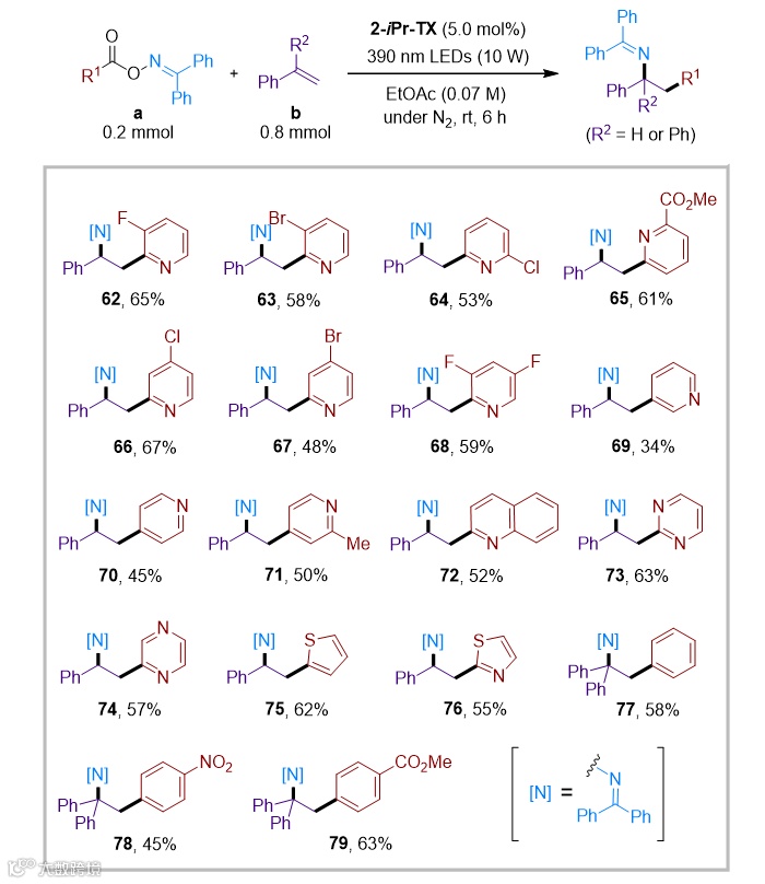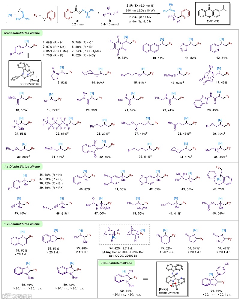 图2. 氨基(杂)芳基化反应中烯烃的底物适用范围