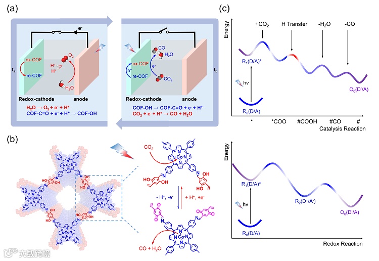 利用具有氧化还原活性电子供体(-C-OH部分)和催化活性电子受体(钴卟啉,Co-TAPP)的共价有机框架(