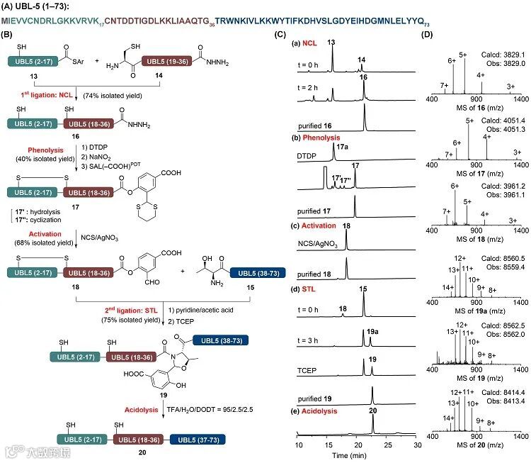 总之,基于酰肼的氧化酚解策略为多肽SAL酯的制备提供了一种通用的方法,突破了传统方法的局限,为蛋白质的化学(半)合成提供了新的技术手段。