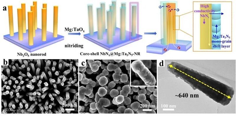 导读:电子科技大学李严波教授团队通过一步氮化方法构筑了以NbNx为核层、Ta3N5为壳层的核壳纳米阵列光阳极,该结构为电荷传输提供了纵向/横向快速通道,使得光生载流子在空间上实现了有效分离。