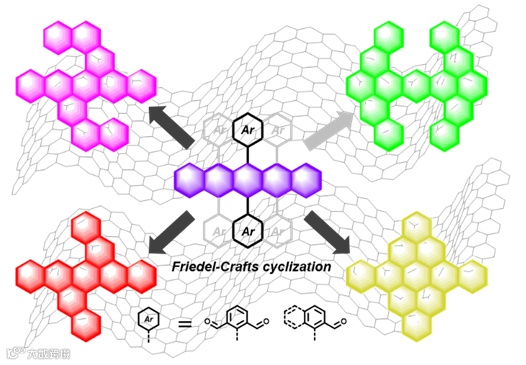 该策略的关键是以并五苯醛基衍生物作为起始材料,然后通过Friedel-Crafts环化和脱水/芳构化来构筑系列扭曲多环芳烃。