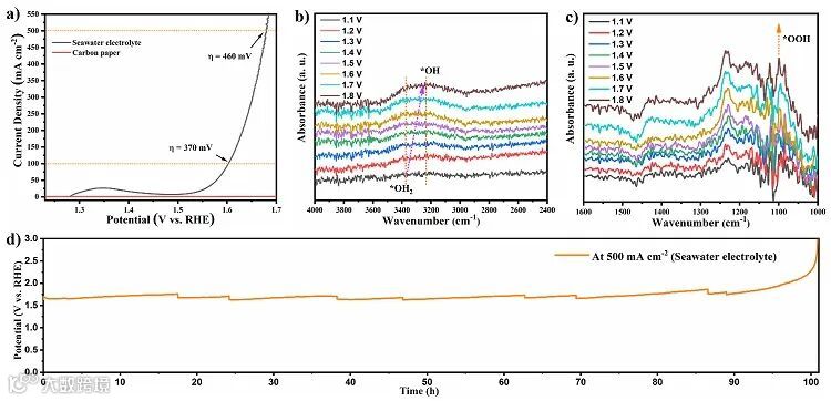 实验结果表明,这种自重构催化剂结构可以有效降低海水杂质对反应活性位点的阻塞效应,从而显著延长电极寿命。相关论文发表于