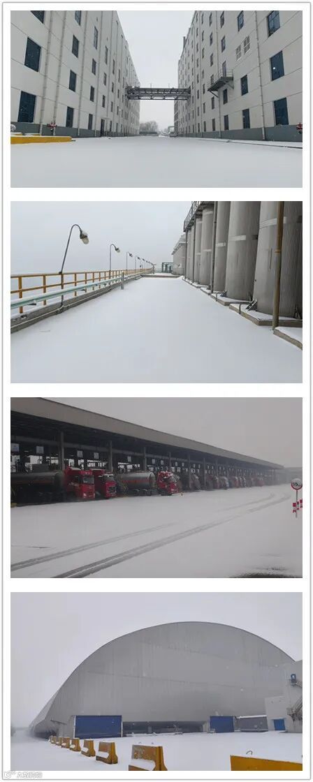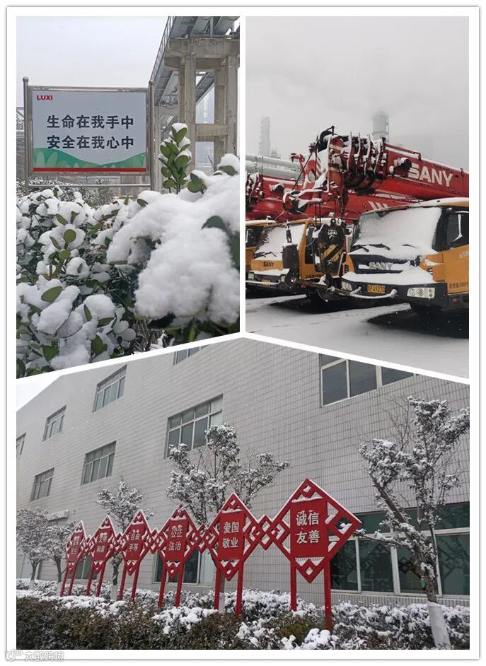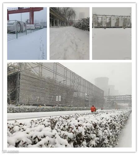 1月22日凌晨,雪落大地,寂静无声。片片雪花如同素洁的精灵飞舞而至。白了框架、白了塔罐、白了管线,白了整个园区……这里邀您赴一场冬雪之约,这里有雪的静谧与热烈,有雪的洁白和火红,让我们共赏鲁西冬雪之美……