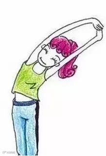 动作描述:自然站着,双手举过头顶,十个手指交叉握住,手心对着天空,像伸懒腰一样往上推,然后慢慢地向两侧弯。