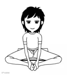 动作描述:背伸直坐稳,双腿弯屈,脚心相对,手指交叉抓住脚前掌,吸气,脊柱往上立,呼气,身体缓慢向前弯,膝盖顺势往两侧往下找地面。