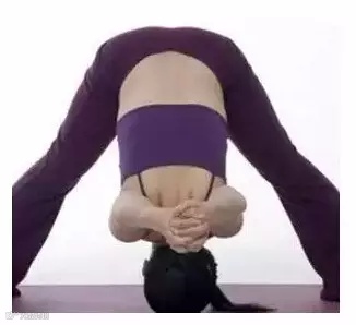 动作描述:分腿站着,慢慢往前弯身,双手抓住腿部,深吸一口气。呼气时,头和脊柱慢慢找地面,臀部顶向天空,腹部试着贴近大腿。