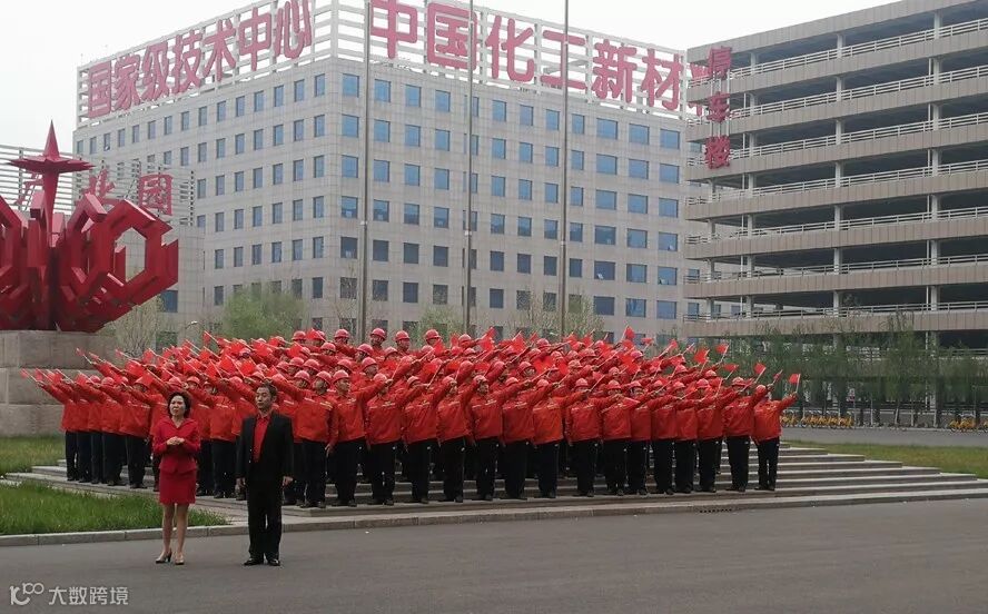 演出现场播放的《我和我的祖国》快闪背景画面中,近百名员工站在集团总部广场前,每人手握红旗,着装规范,步调、手势、队形整齐化一,歌声嘹亮,在奋进激昂的歌声中尽情抒发出对伟大祖国的满腔赤城和无比热爱之情。