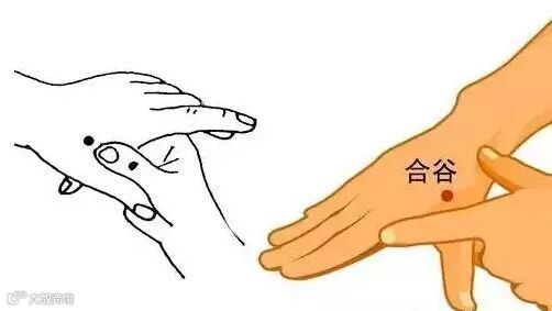 用右手拇食指岔开,捏拿左手合谷50下;