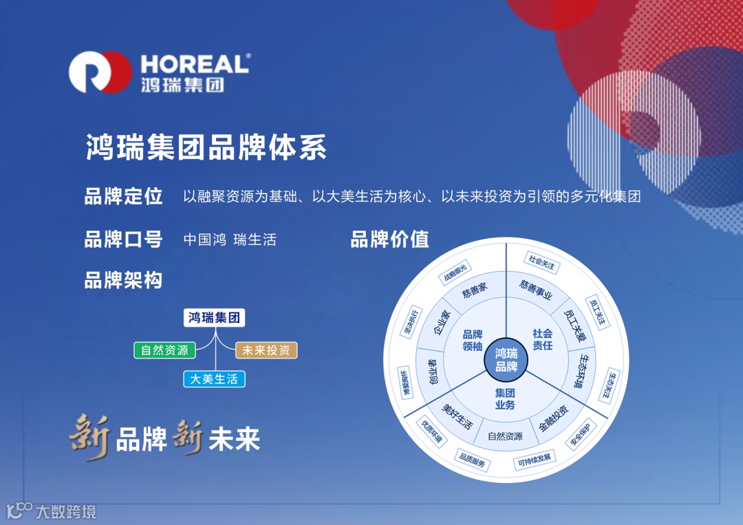 复大复为项目组重新梳理了鸿瑞集团的品牌架构,提出建立一个复合品牌架构模式的解决方案;通过对集团产业定位、品牌核心价值、品牌受众等多维度调研分析,提炼了具有独特代表性、寄托美好愿望的品牌核心词:中国鸿 瑞生活。