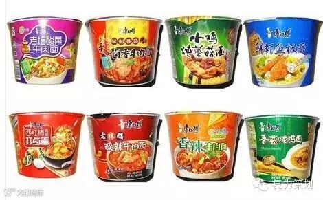 当我们把康师傅的8款便当面放在一同的时分,就能够发现这个问题:固然8款产品都是大小一样的碗装,但在同样的碗装上“康师傅”的LOGO基本就不在一个位置上,视觉一下就显得紊乱。