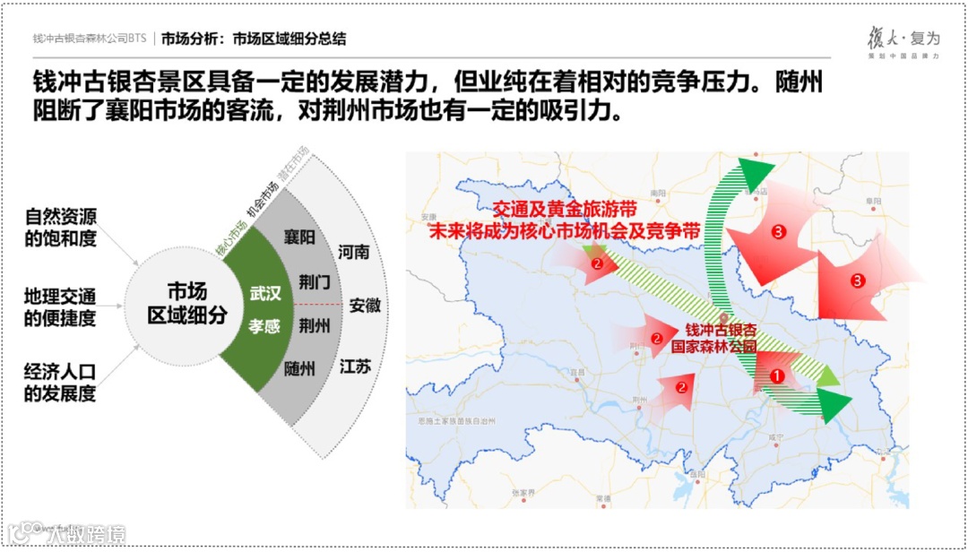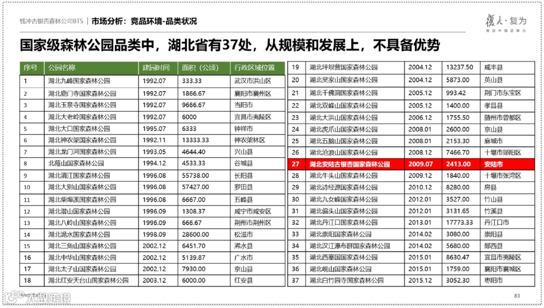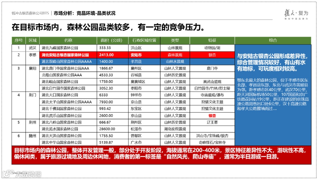 竞品太强:国家森林公园全省37家,目标市场15家;周边且有明显比较优势的同类银杏景区;