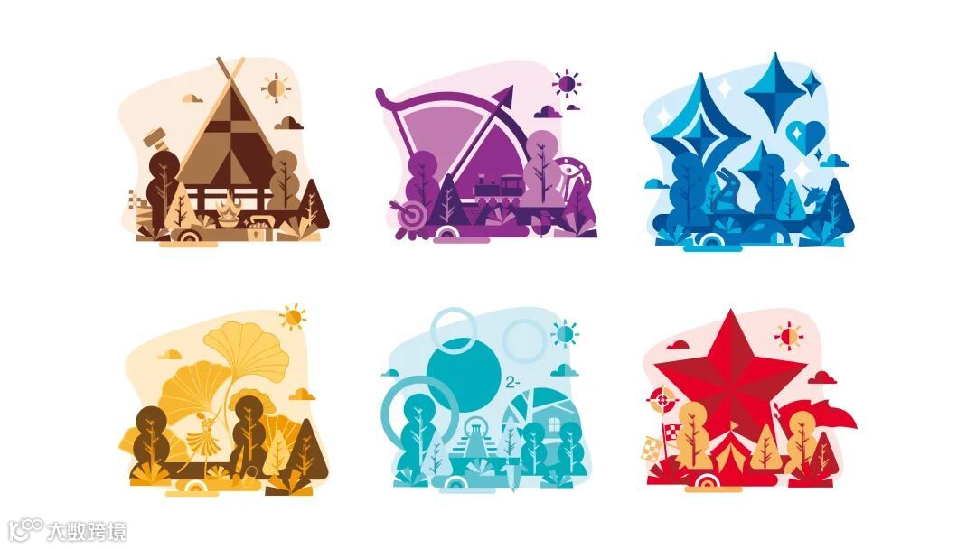 品牌建立是一个长期的过程,除了品牌主视觉设计,也需要更多品牌形象符号的输出,包括产品的符号化,以简约的视觉符号代替复杂的产品图片,更便于记忆,营造森林神秘感、故事感,形成品牌联想,完善品牌对外宣传的信息内容,打造满足消费者出游选择的古森林景区。