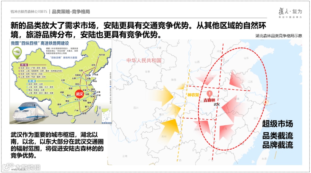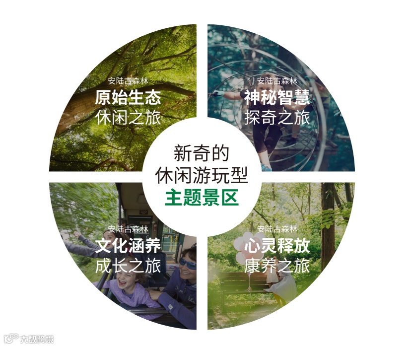 形成区隔的关键就是差异化。项目组依托消费者的品类思考品牌选择的消费逻辑,创造景区分流体系,聚焦竞争对象,放大竞争格局,将安陆古森林从传统的“自然观光型景区” 重新定位于“新奇的休闲游玩型主题景区”。