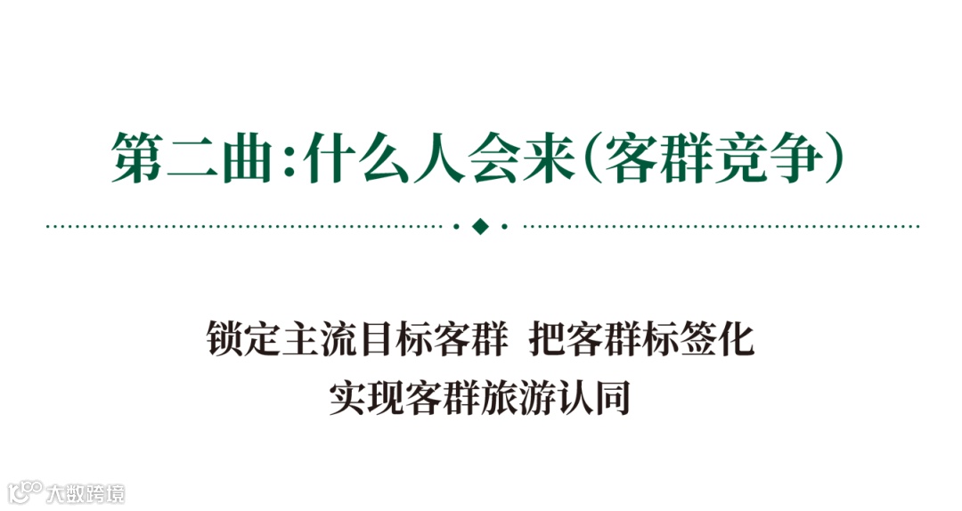 第一,要有远见,不能仅仅盯着周边的同类景区,即使战胜了对手,也不过是战胜了一个看似成功实则发展有限的“软柿子”;