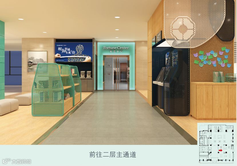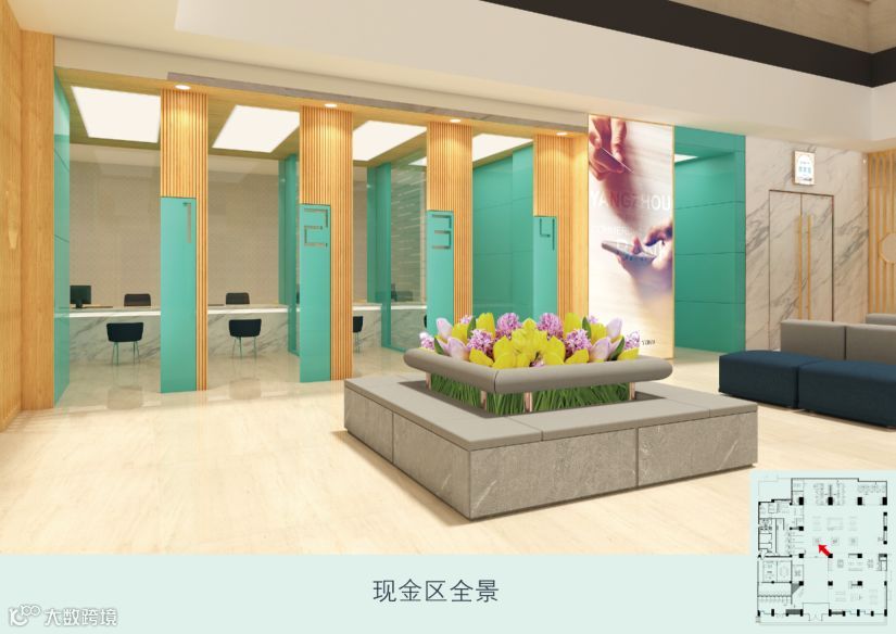 设计形式上以“现代金融机构”的格调为基础,大面积运用明快的色调和具有扬州特色的竹板做装饰,并预留一定空间用于智能设备安装。同时,考虑到二次布线的问题,在设计方案中抬高了部分回路增设区域的局部地坪,铺设地暖地板,方便后期增设回路。
