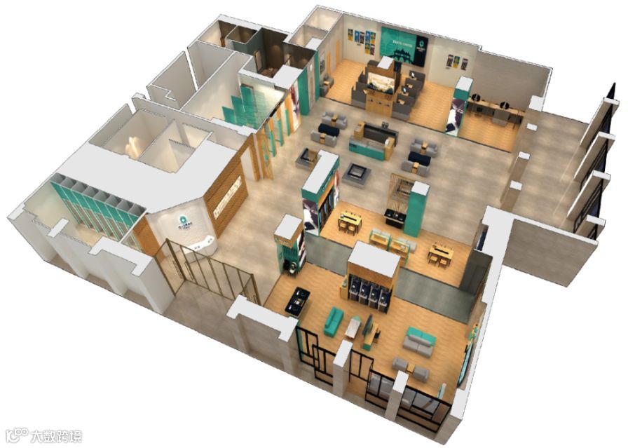 考虑到地下室的存在以及大楼二次改建的目的,复大·复为项目组将营业部的设计方案定为以搭建设计为主,充分利用原有的天地墙饰面,对不合理区域重新进行规划设计。