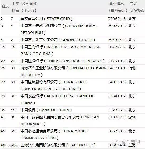 ——进入2016年《财富》世界500强公司的中国企业