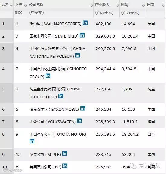 2016年的《财富》世界500强榜单新鲜出炉!