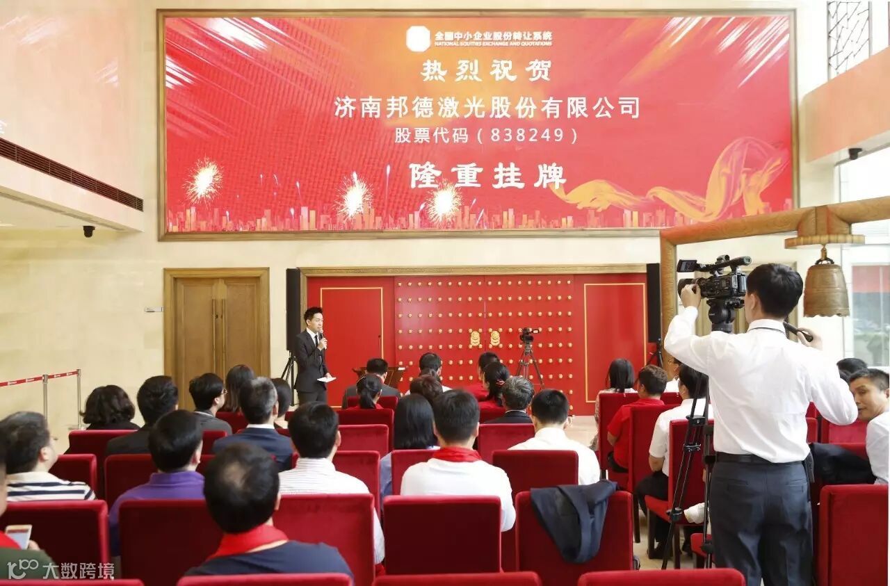 2016年8月1日,邦德激光成功等登陆新三版,成为北方 上市企业。上市是邦德激光资本化运作、全球 布局的的重要战略开端。
